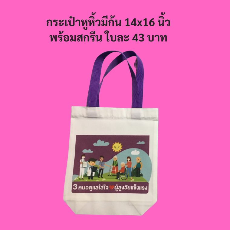 สกรีนถุงผ้าดิบ รับเย็บถุงผ้าดิบแคนวาสพร้อมรับสกรีนกระเป๋าผ้า ตัวอย่างกระเป๋าผ้าหูหิ้วมีก้นพร้อมสกรีนราคาใบละ 43 บาท สามารถเลือกสกรีนได้ไม่จำกัดสี สกรีนสีติดแน่น ทนนาน เหมาะสำหรับเป็นของขวัญ ของชำร่วย ของแจกในบูธสินค้าต่าง ๆ สร้างความประทับใจ ทั้งผู้ให้ และผู้รับ สั่งกระเป๋าผ้าดิบกับร้านของเรามีรายละเอียดและจุดเด่น ดังนี้